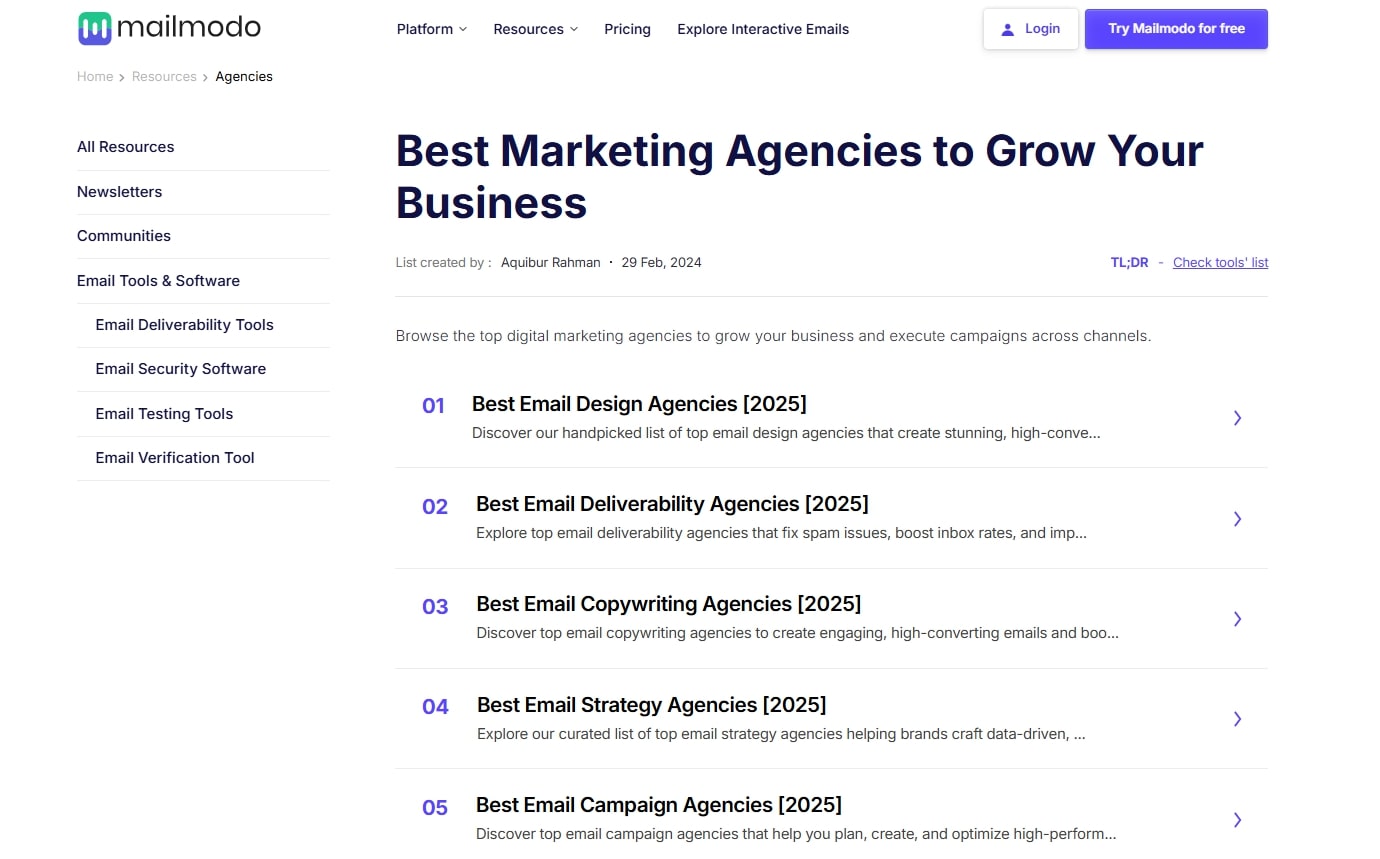 • Curated List: A handpicked selection of leading marketing agencies.