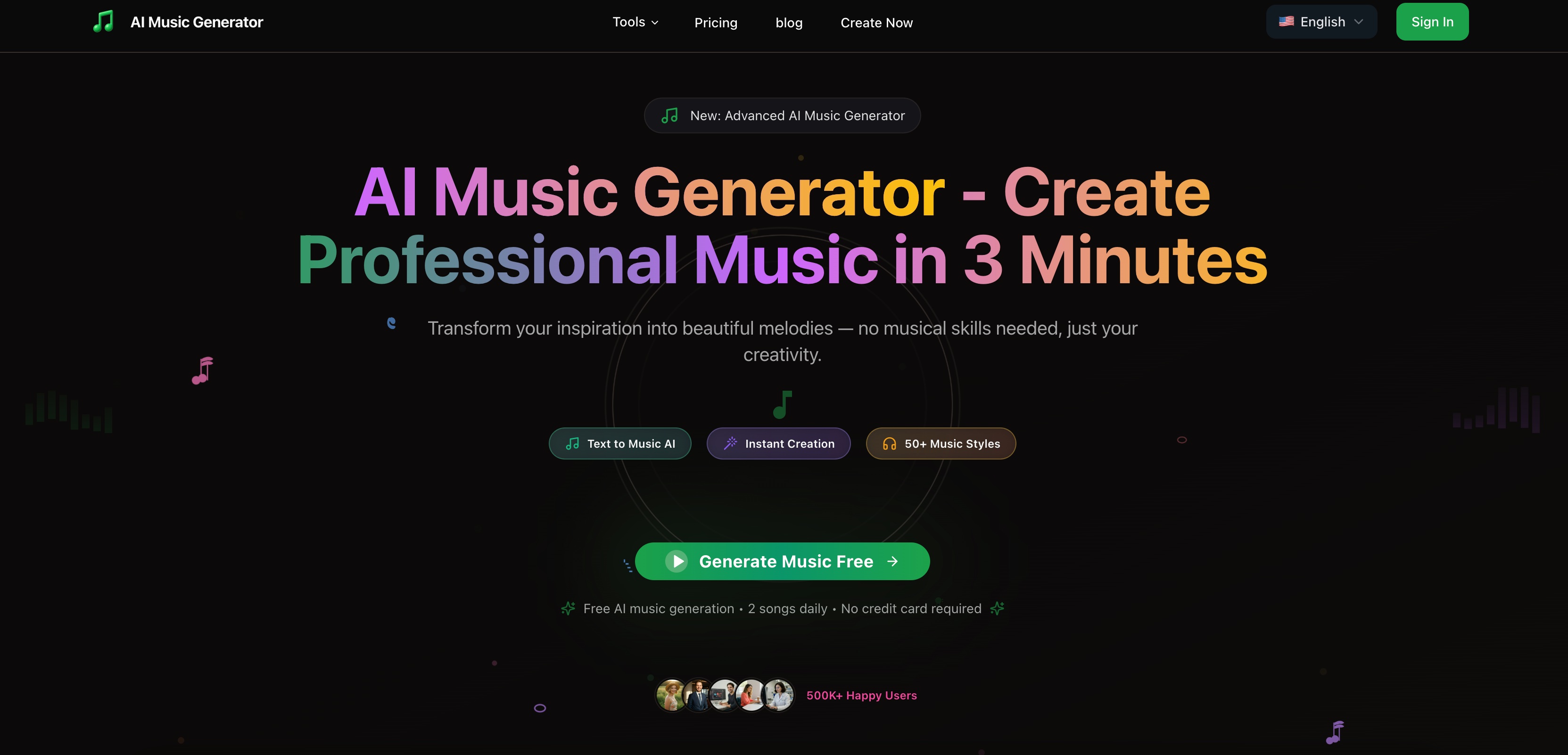 AI Music Generator is an advanced AI-powered platform that transforms text descriptions into professional-quality MP3 songs and instrumental tracks. With over 50 music styles, including pop, rock, classical, and electronic, users can generate studio-grade 320kbps MP3 audio files in just 60 seconds, even without any musical experience.