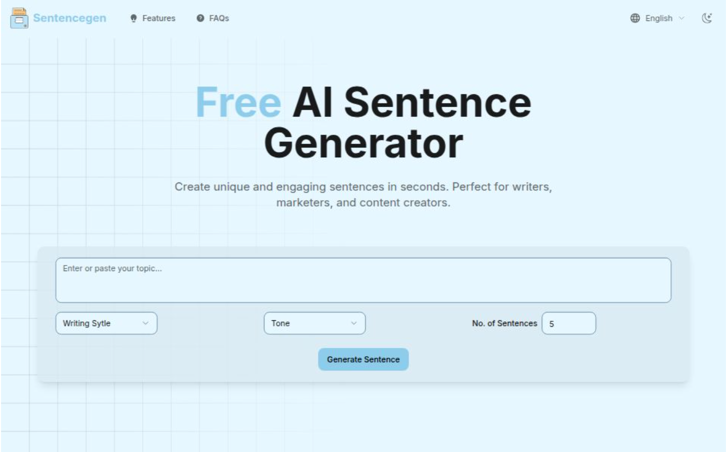 Create unique and engaging sentences in seconds. Perfect for writers, marketers, and content creators.