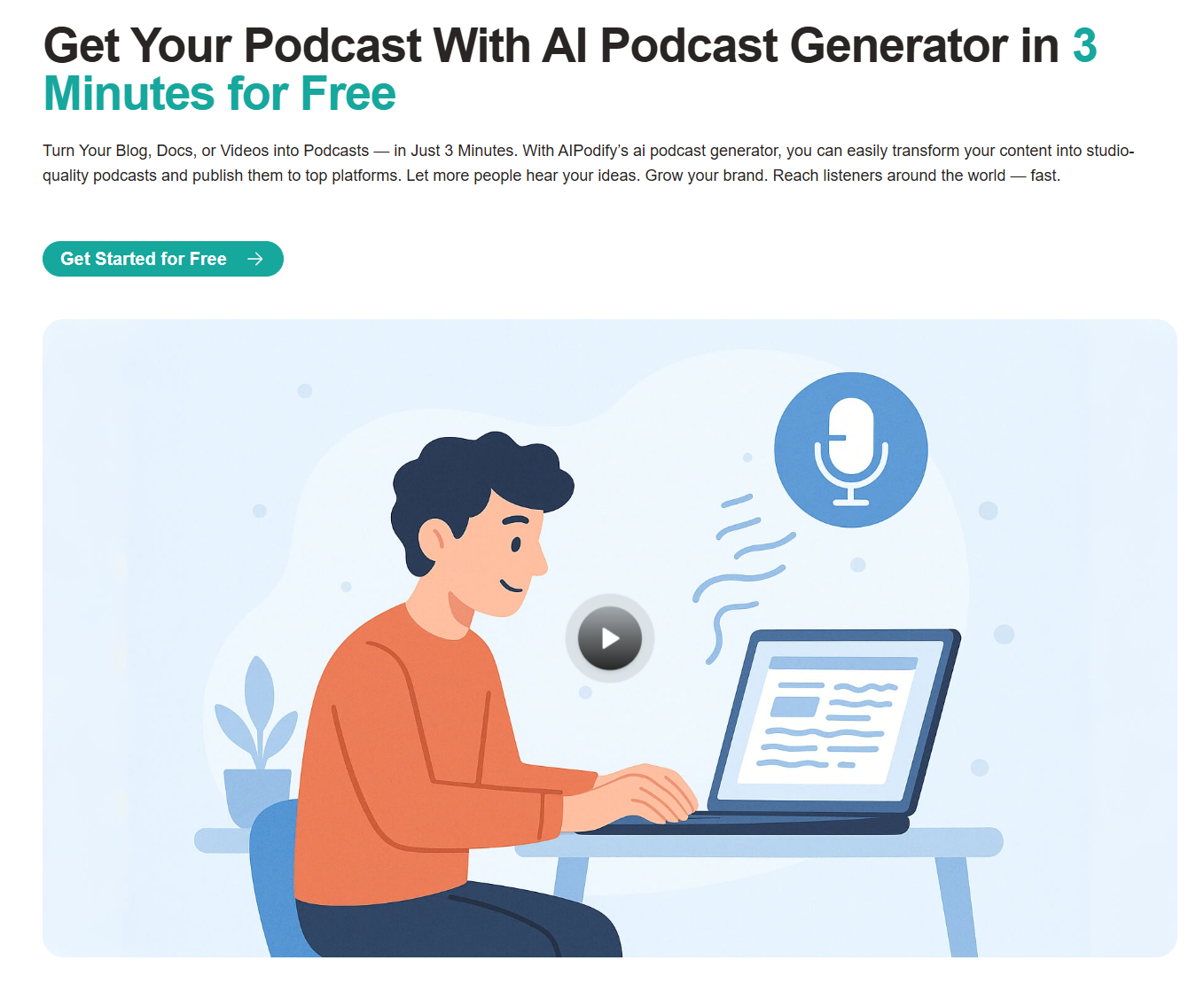 AIPodify is a powerful AI podcast generator that allows creators to easily convert their content into high-quality audio podcasts. Whether it's a blog post, article link, document upload, or YouTube video, AIPodify transforms it into a natural-sounding podcast using advanced AI voice technology — all without recording or editing.
