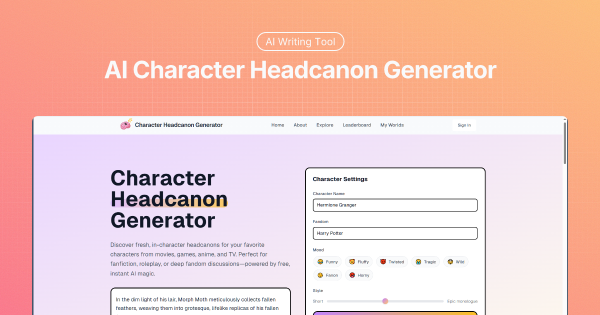 • AI-Enhanced Generation: Quickly produces diverse character headcanons.