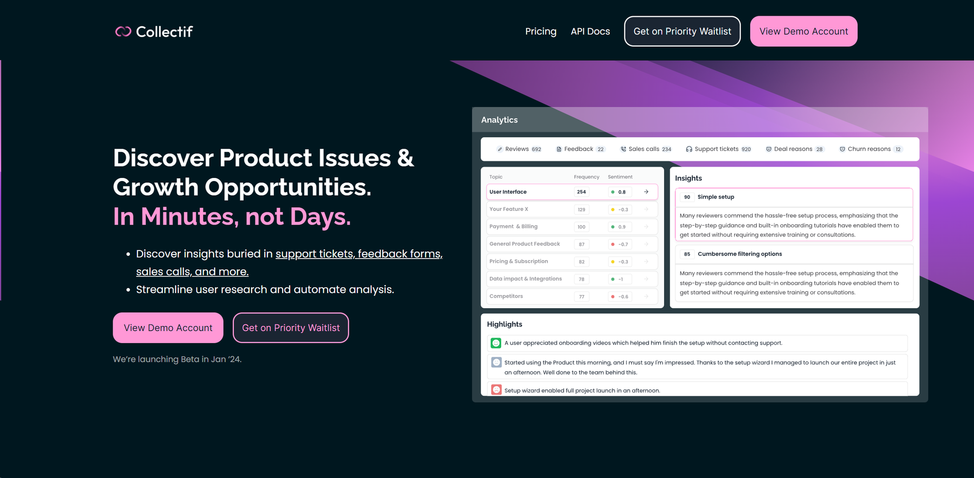 Collectif is an innovative tool that revolutionizes user research for SaaS companies. By automating data analysis and centralizing insights, it empowers teams to make data-driven decisions that improve customer experience and product outcomes.