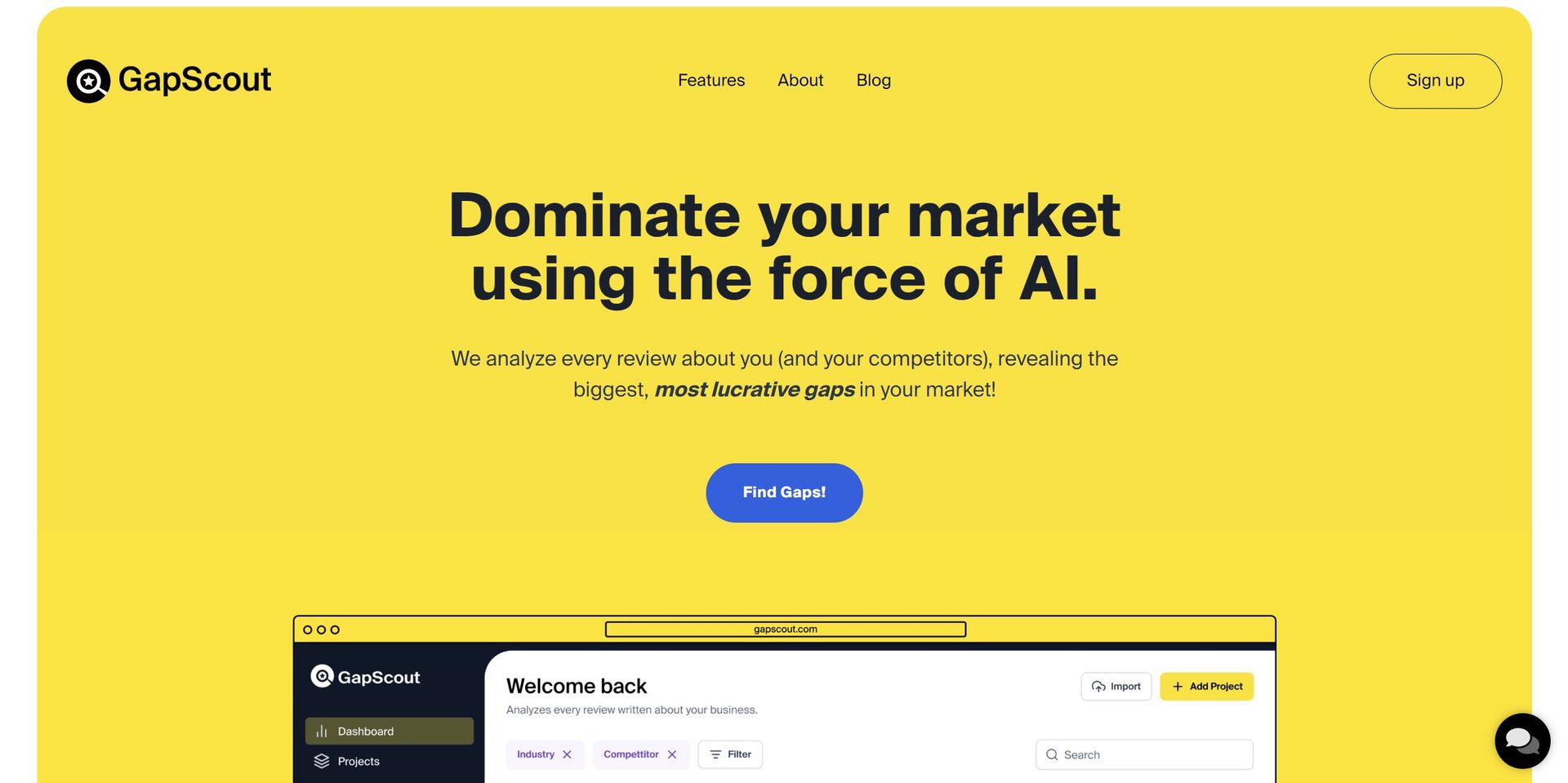GapScout is an advanced AI-powered market research tool designed to transform how businesses approach market analysis. By leveraging artificial intelligence, GapScout efficiently extracts valuable insights from customer reviews, enabling companies to pinpoint market gaps and optimize their strategies to increase sales.