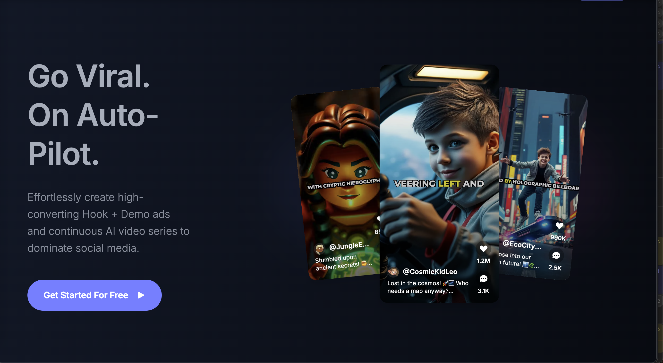 • AI-Powered Video Generation: Automatically creates engaging videos that are designed to go viral.