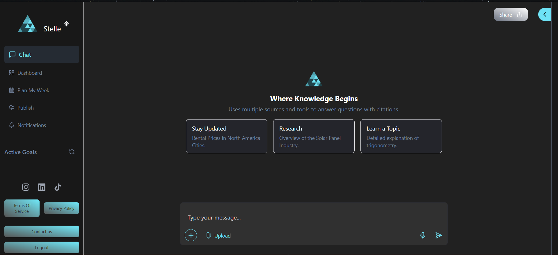 Stelle is an AI-Powered productivity platform designed to help users achieve their goals through strategic planning, task automation, and real-time progress tracking. Unlike basic chatbots, Stelle understands your objectives and creates actionable plans while automating routine tasks such as scheduling and data entry.
