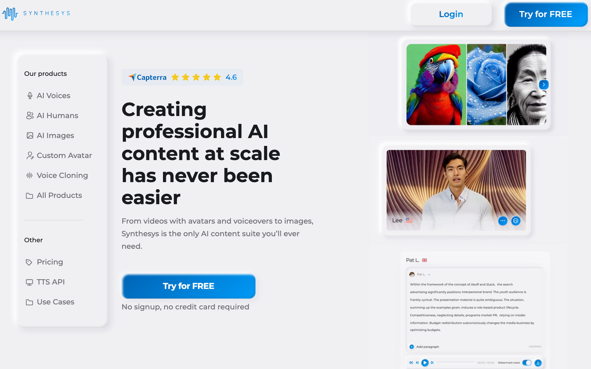 - Free Version: Limited to 50 images per month, or 100 with a Synthesys account sign-up.