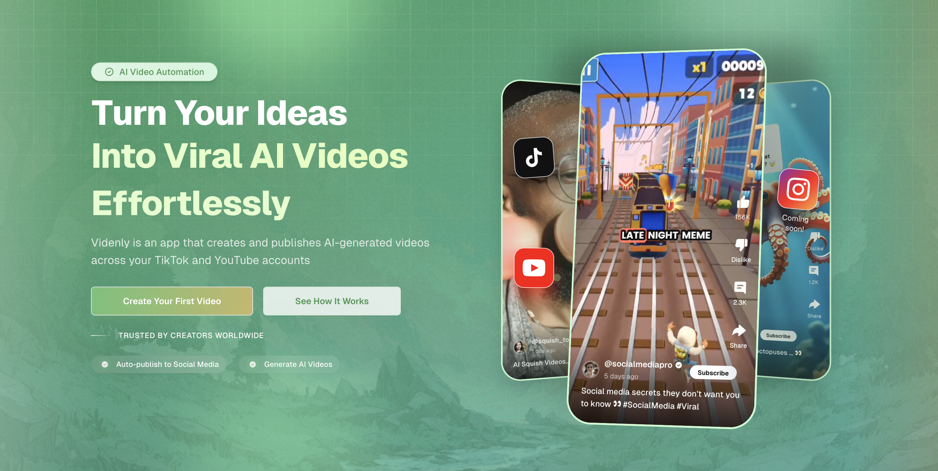 Videnly is an automated video generation software that empowers businesses and creators to easily generate AI videos in various formats and publish them directly to their social media accounts.