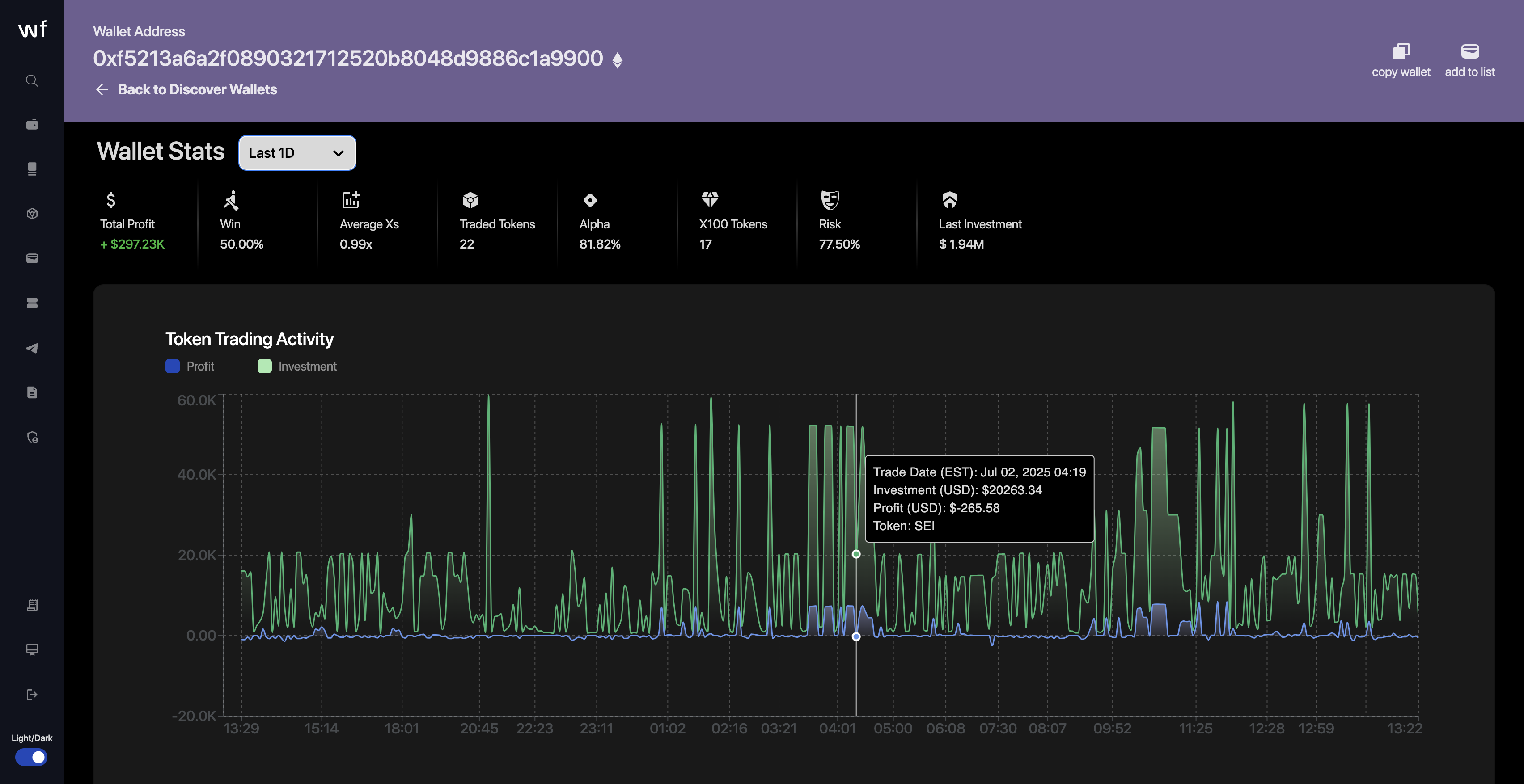 Comprehensive Tracking: Offers robust tools for tracking wallet performance.
