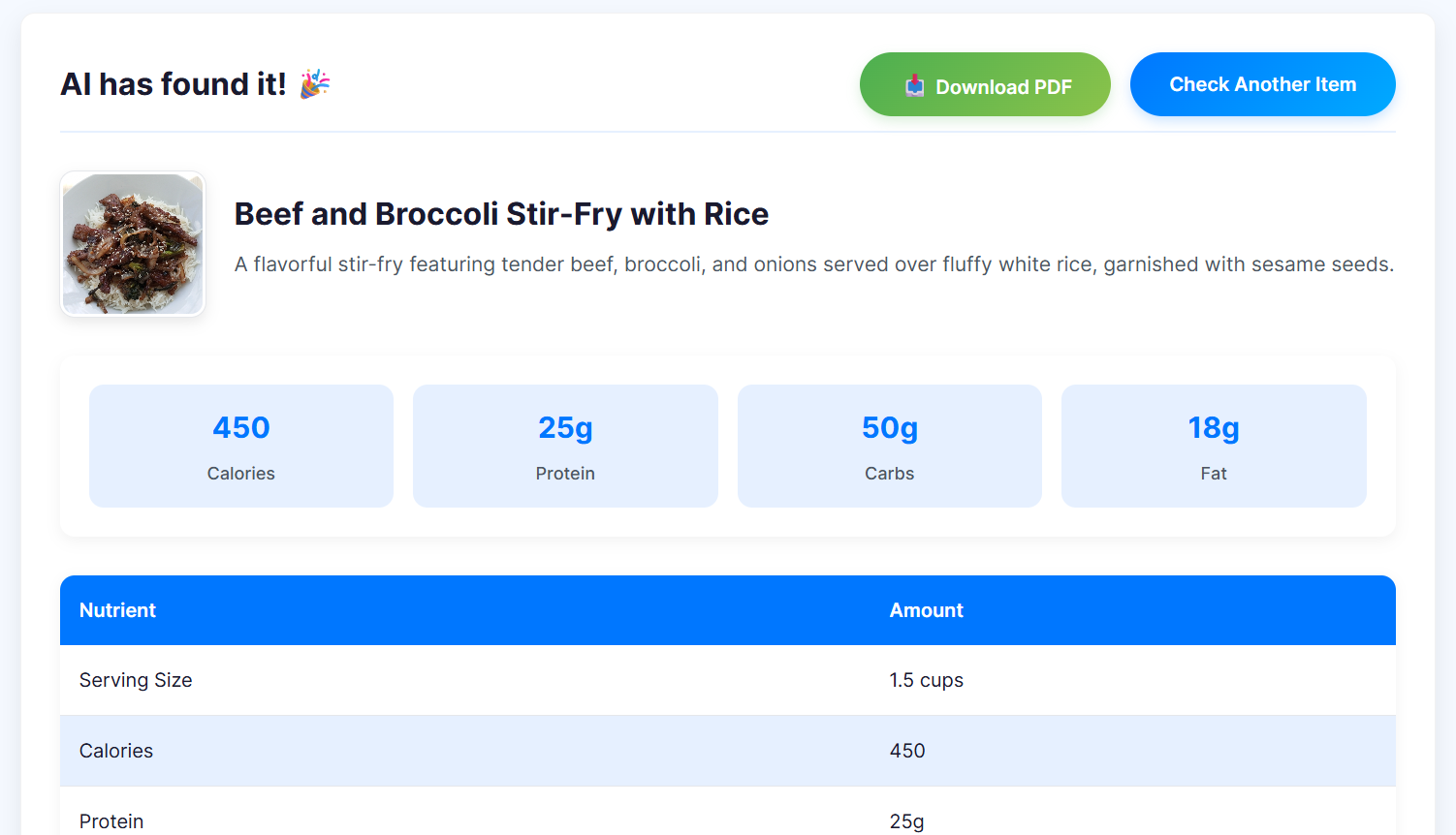 • Food Detection: Accurately identifies various meals using advanced AI technology.